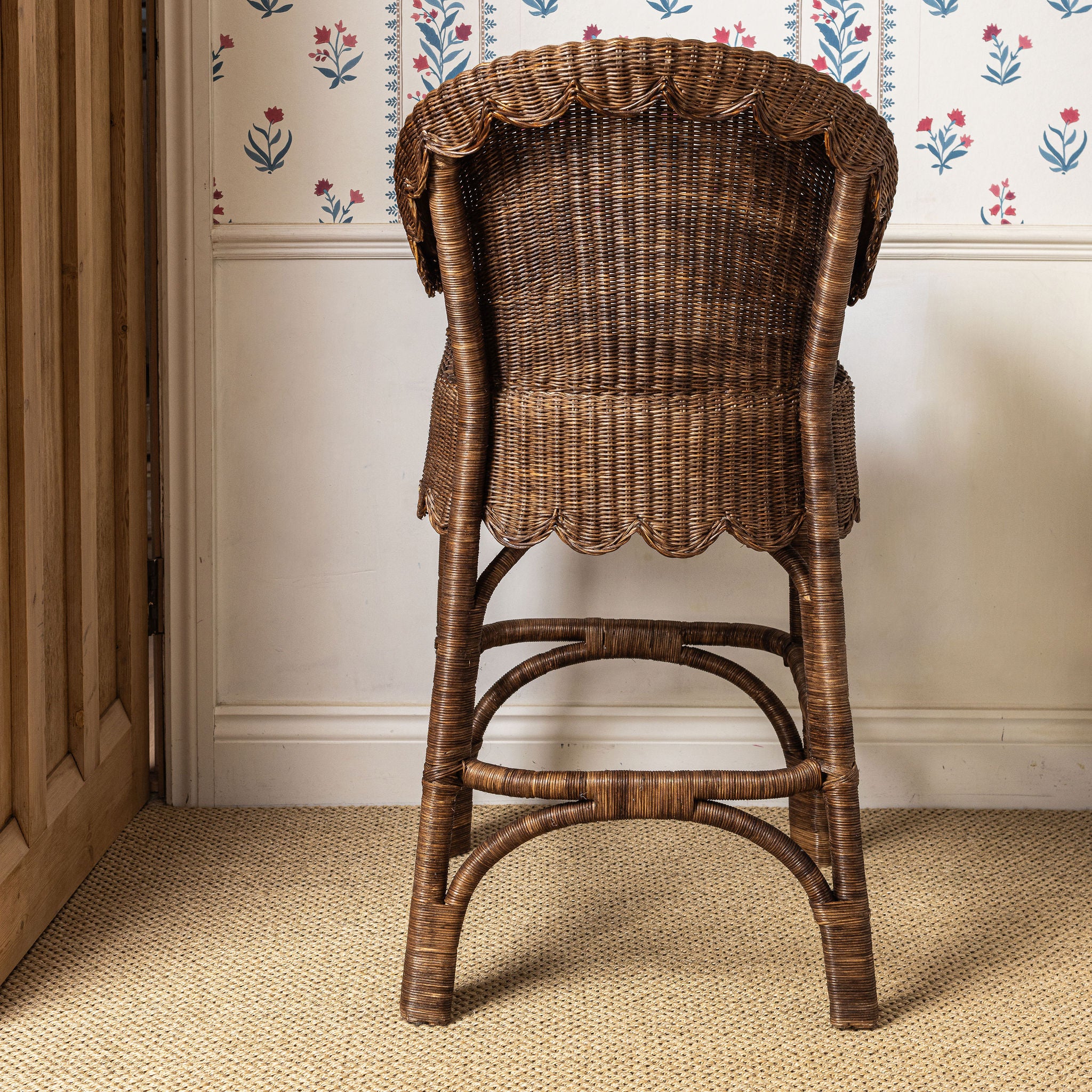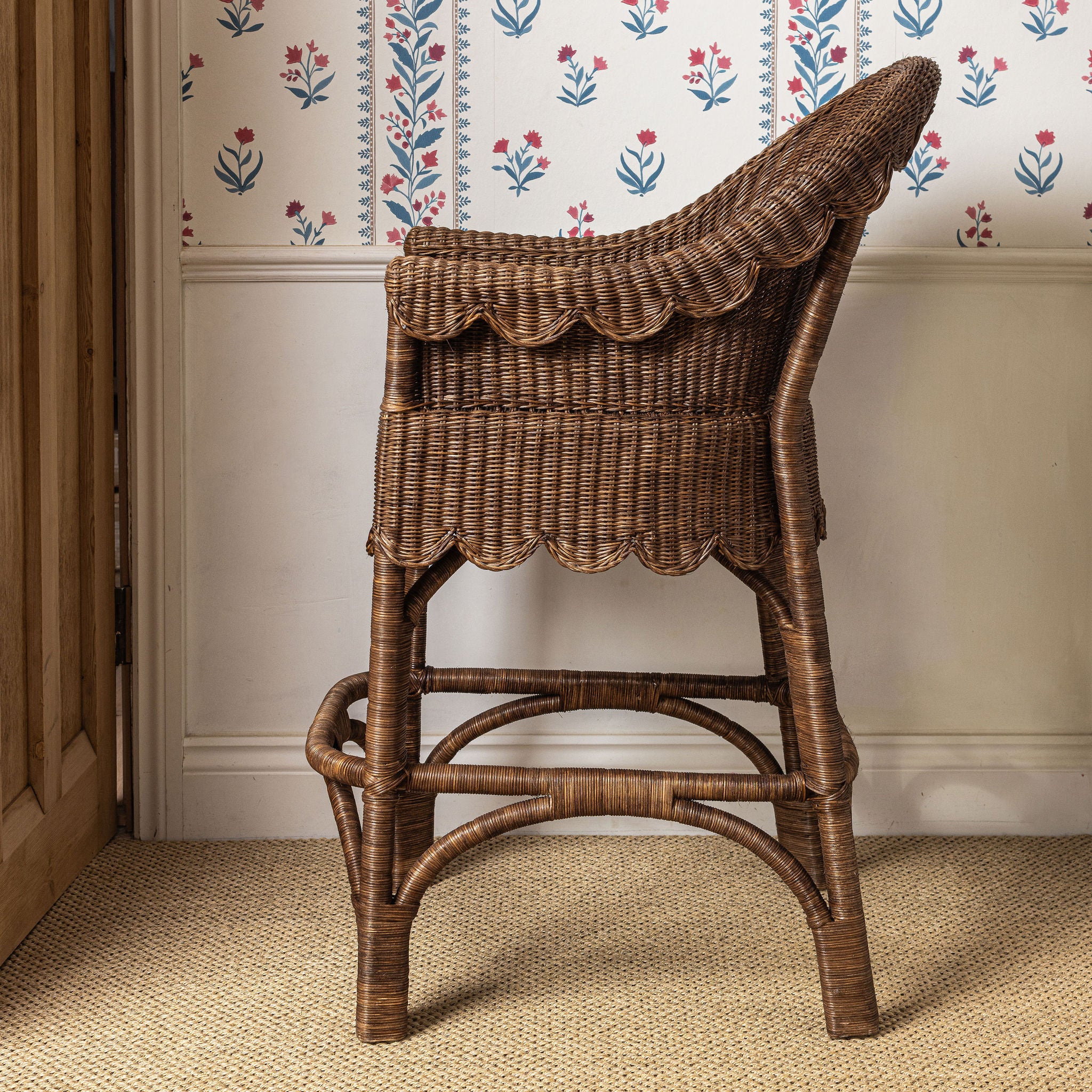 A comfortable and stylish counter stool featuring a supportive curved back, armrests, and a signature scalloped edge. Hand-woven with rich wicker, the Ziggy adds a natural, yet refined texture to any kitchen counter or bar area. Designed by us in the UK and ethically handcrafted in India by independent artisans.