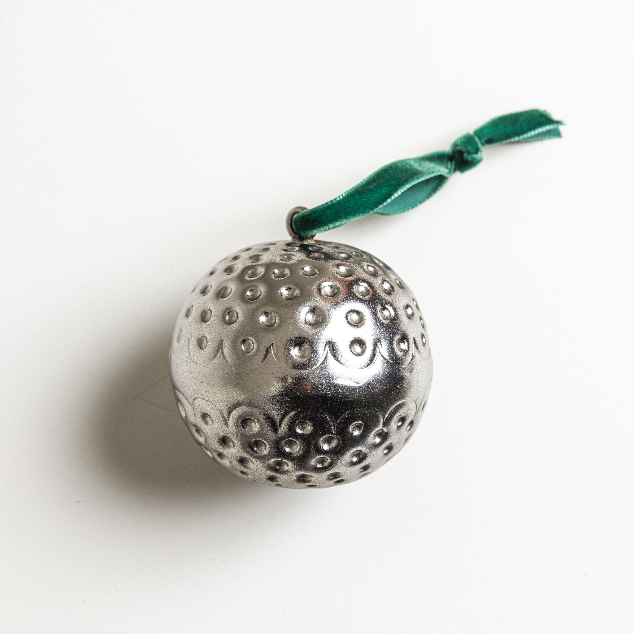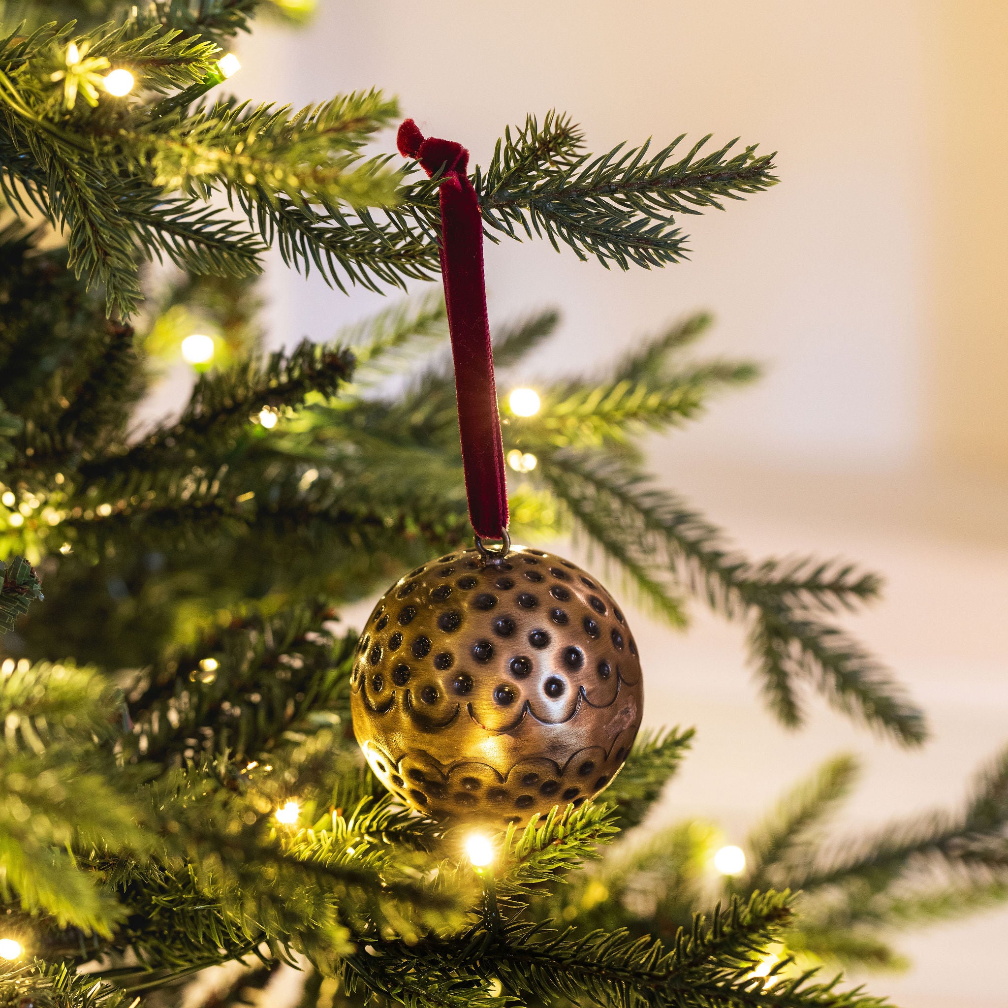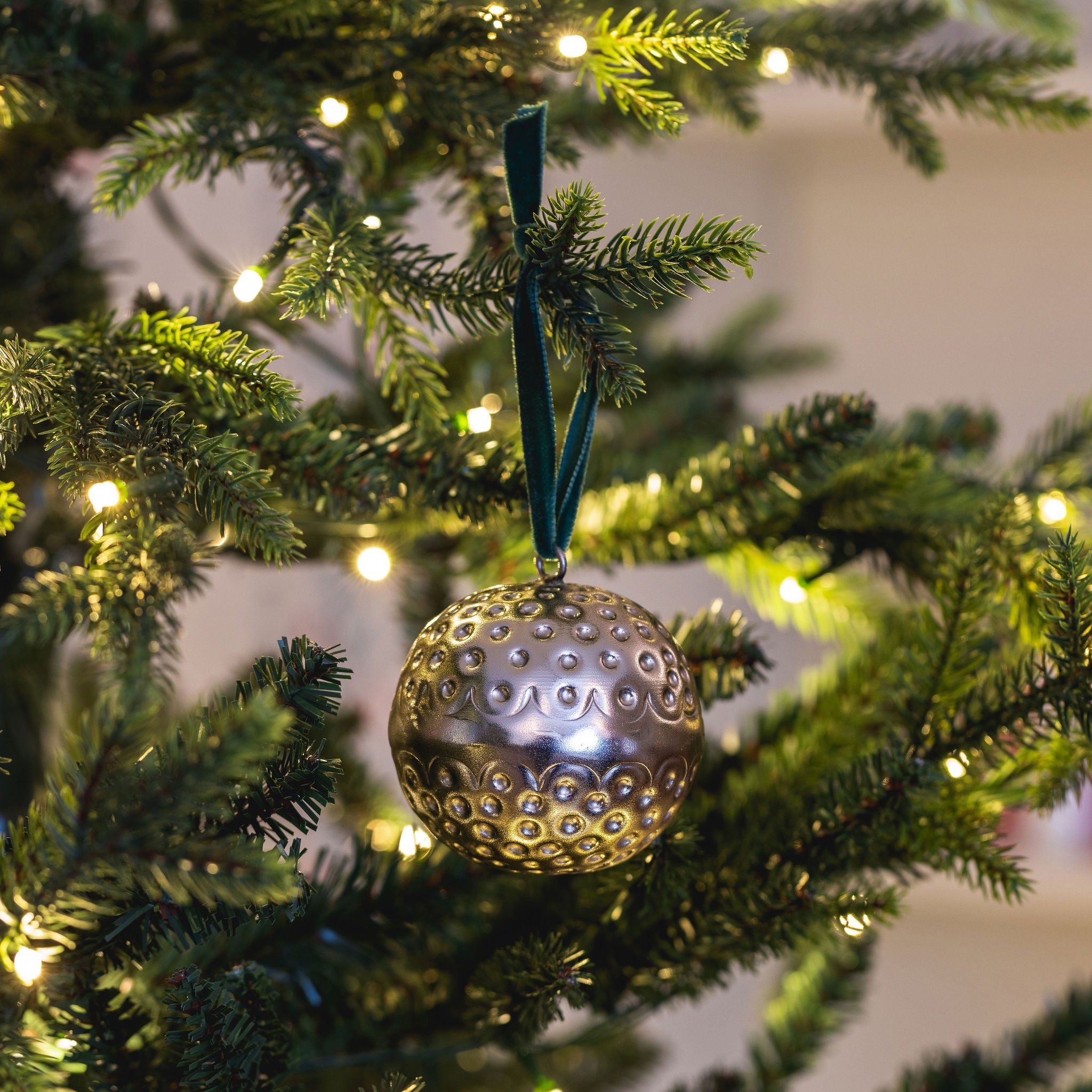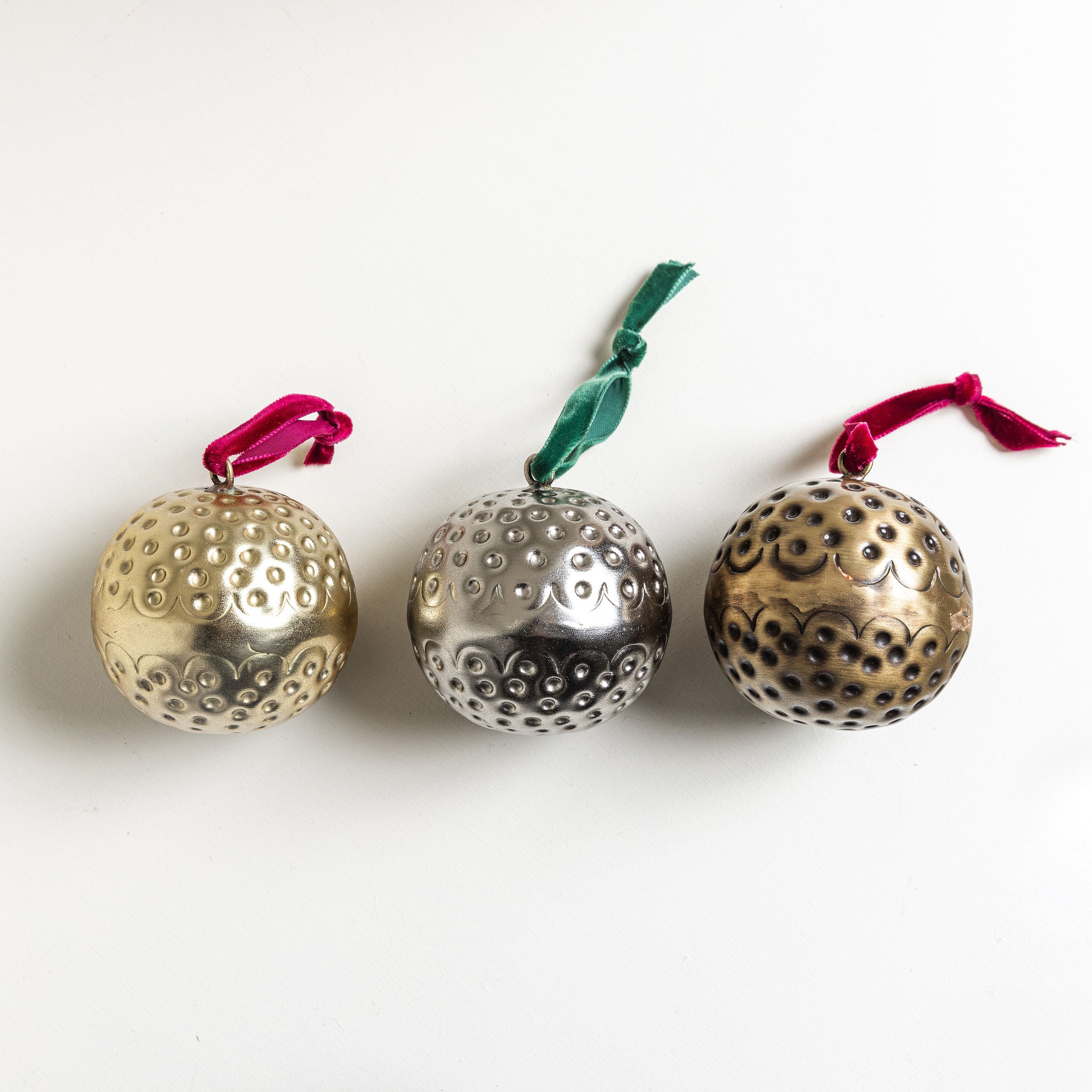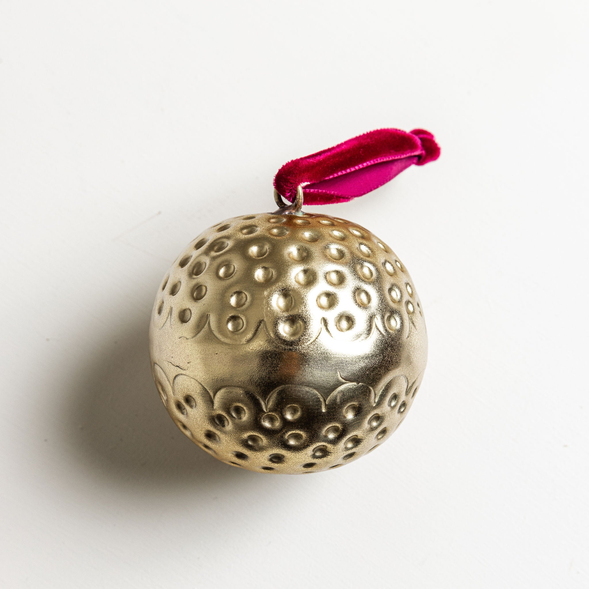 Combining a classic bauble shape with a hammered texture. Contrasted with a soft velvet ribbon. Available in polished chrome, antique brass, and lacquered brass finishes.