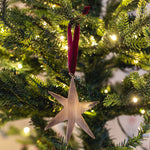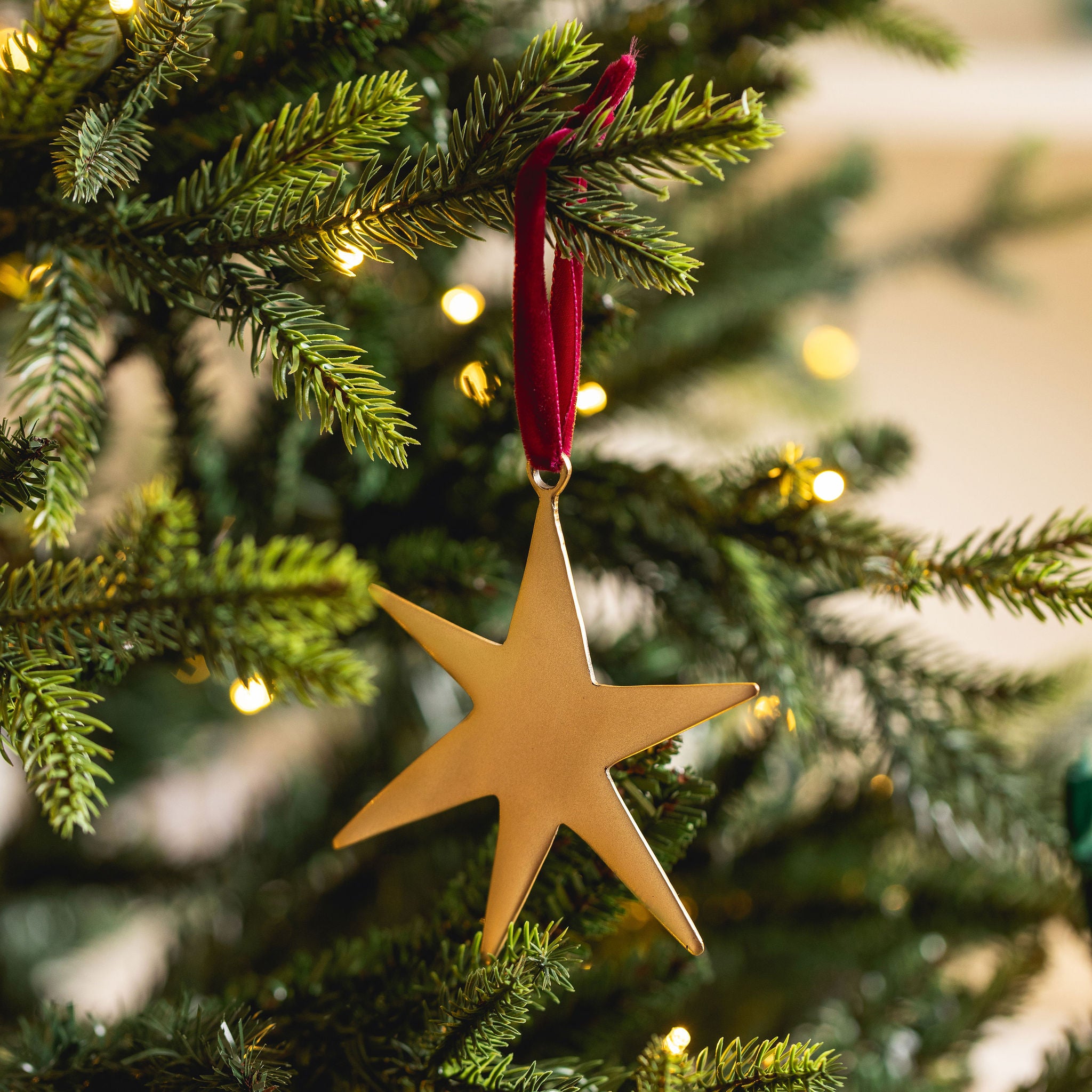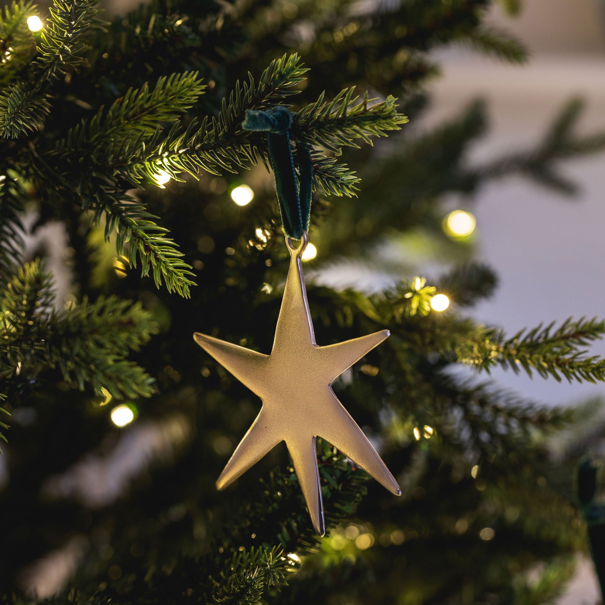 A unique Christmas star ornament. Hang it where it can catch the light for a stunning celestial sparkle. Available in lacquered brass, antique, and polished chrome.